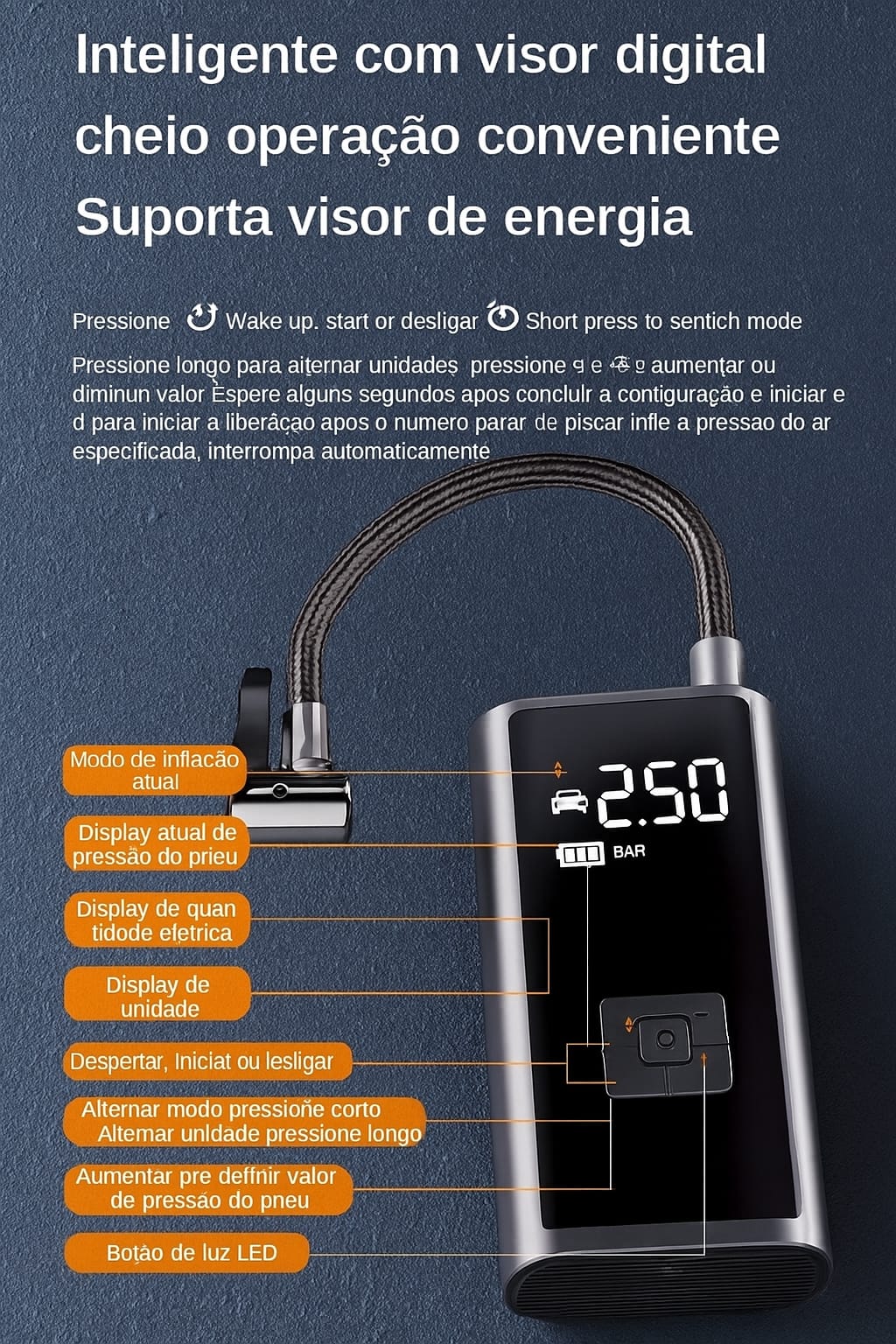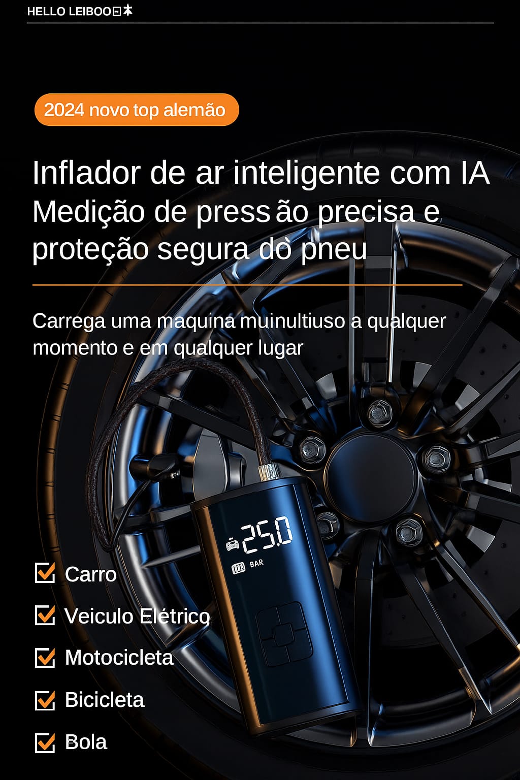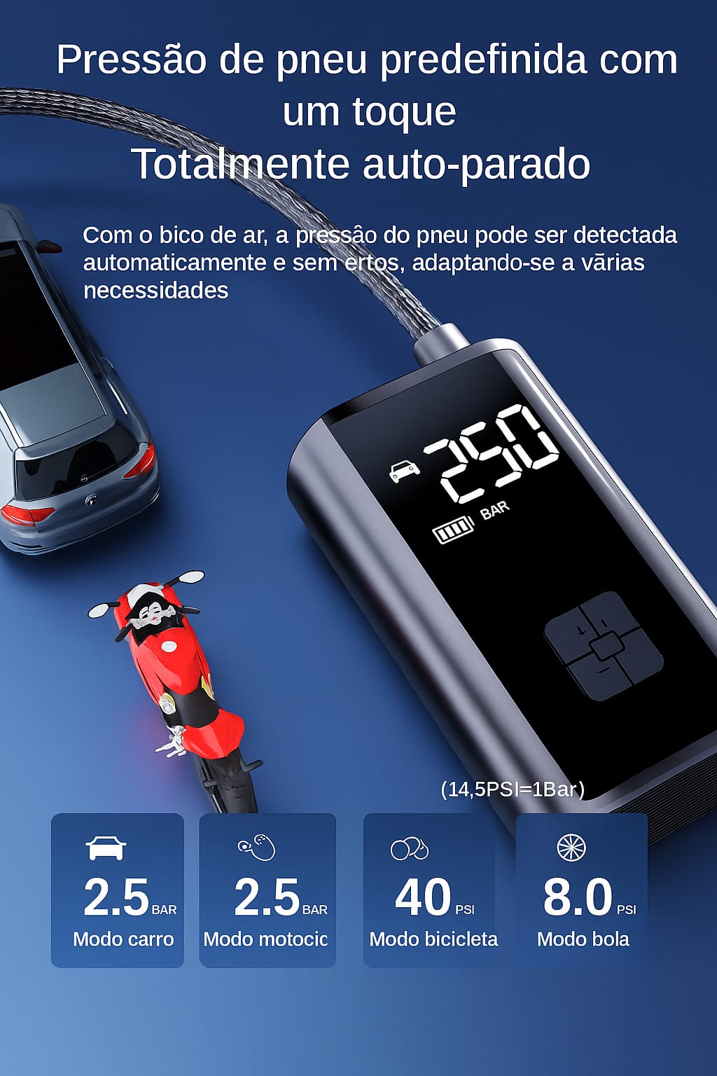 Compatibilidade: pneus de carros, motos, bicicletas, bolas esportivas, infláveis em geral