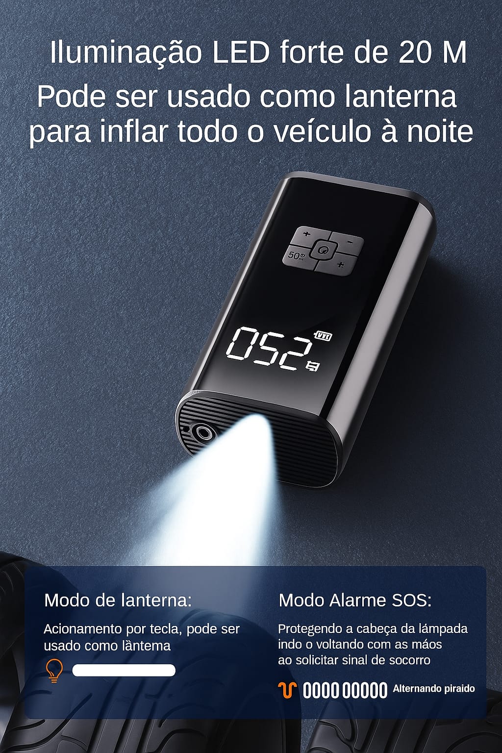 Esteja sempre preparado para qualquer emergência na estrada com a Bomba de Ar do Carro Sem Fio – Compressor Portátil 150PSI, a solução inteligente, compacta e eficiente para manter os pneus do seu carro, moto ou bicicleta sempre calibrados com praticidade e rapidez! 🛞🔋